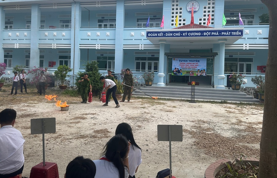 Tại buổi tuyên truyền, lực lượng Công an xã còn tổ chức diễn tập phương án chữa cháy, cứu nạn, cứu hộ cho cán bộ, giáo viên và học sinh, góp phần nâng cao ý thức và kỹ năng xử lý tình huống thực tế.