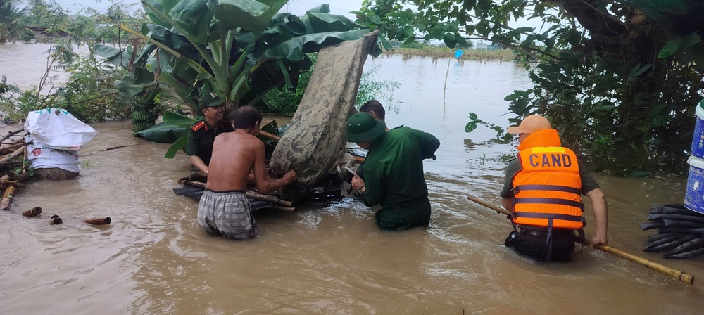 Đặc biệt, khi mực nước tiếp tục dâng cao trong ngày 28/10/2025, lực lượng Công an xã đã tổ chức sơ tán khẩn cấp các hộ dân ở khu vực ven sông, ưu tiên người già, phụ nữ và trẻ em, hỗ trợ vận chuyển đồ đạc, vật dụng sinh hoạt đến nơi cao ráo, an toàn.