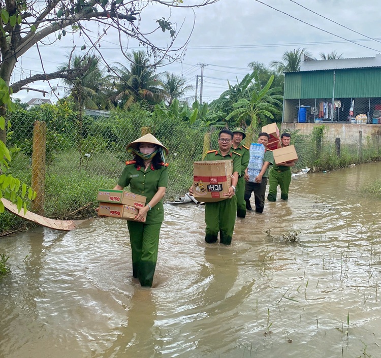 Ngoài việc ứng cứu khẩn cấp, Công an xã Hàm Thuận còn phối hợp với UBND xã và các mạnh thường quân vận động hơn 30 phần quà, nhu yếu phẩm (gồm mì tôm, nước khoáng, sữa, bánh…) để hỗ trợ các hộ dân bị ảnh hưởng bởi mưa lũ, giúp bà con ổn định đời sống trong những ngày mưa lớn kéo dài.