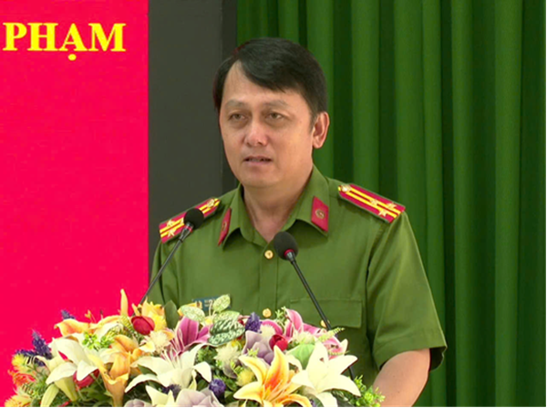 Đ/c Thượng tá Nguyễn Văn Tới - Trưởng Công an xã phát biểu tại buổi lễ phát động