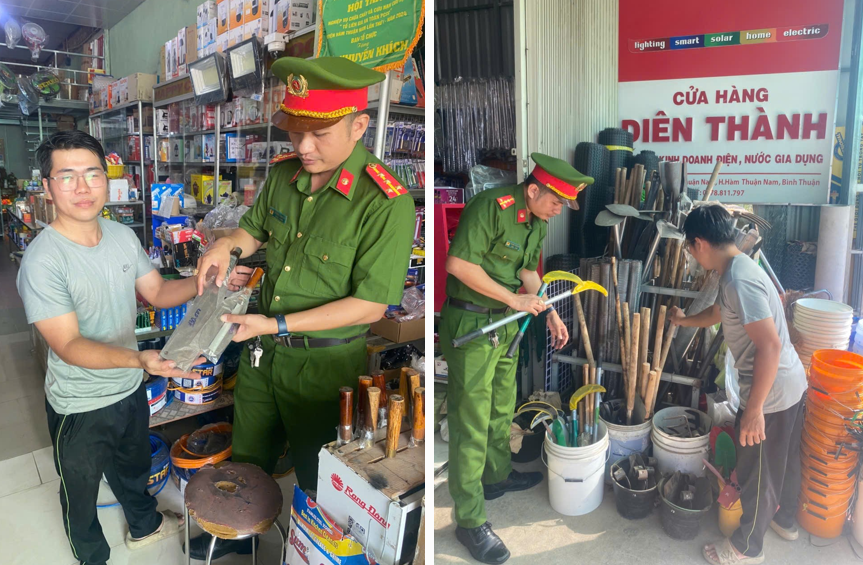 Thực hiện nghiêm Điều 7 Nghị định số 149/2024/NĐ-CP ngày 15/11/2024 của Chính phủ và Phụ lục V Thông tư số 75/2024/TT-BCA của Bộ Công an về danh mục dao có tính sát thương cao, Công an xã Hàm Thuận Nam đã tổ chức làm việc, ký cam kết với các cơ sở kinh doanh có liên quan đến hoạt động buôn bán, trưng bày và sử dụng các loại dao, vật dụng sắc nhọn trên địa bàn.