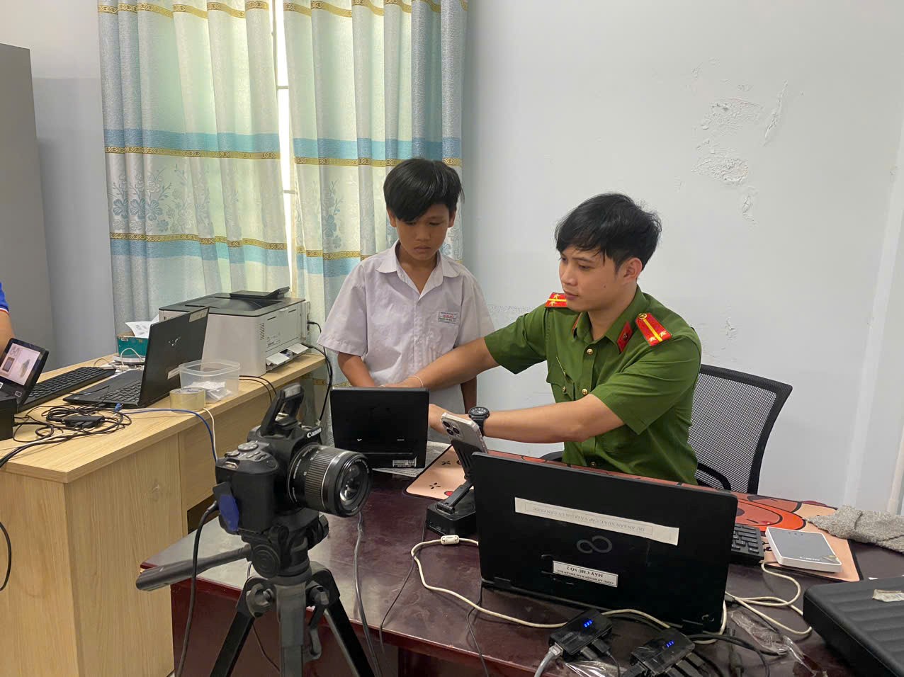 Công an xã Hàm Thuận tập trung lực lượng thực hiện cấp căn cước và tài khoản định danh điện tử mức độ 2 cho công dân từ 6 đến dưới 14 tuổi