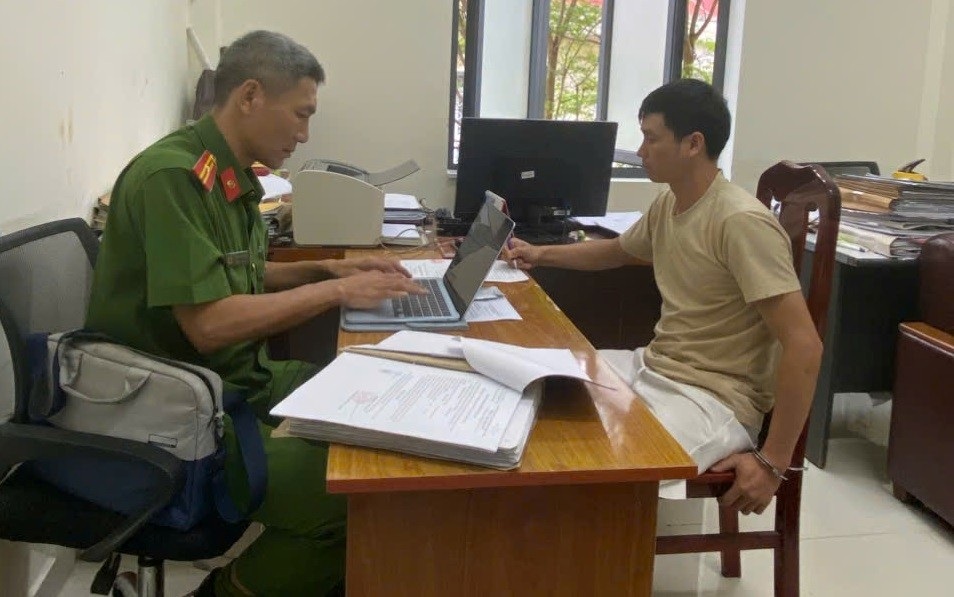 Đối tượng N.Q.T tại trụ sở Công an xã Hòa Bắc