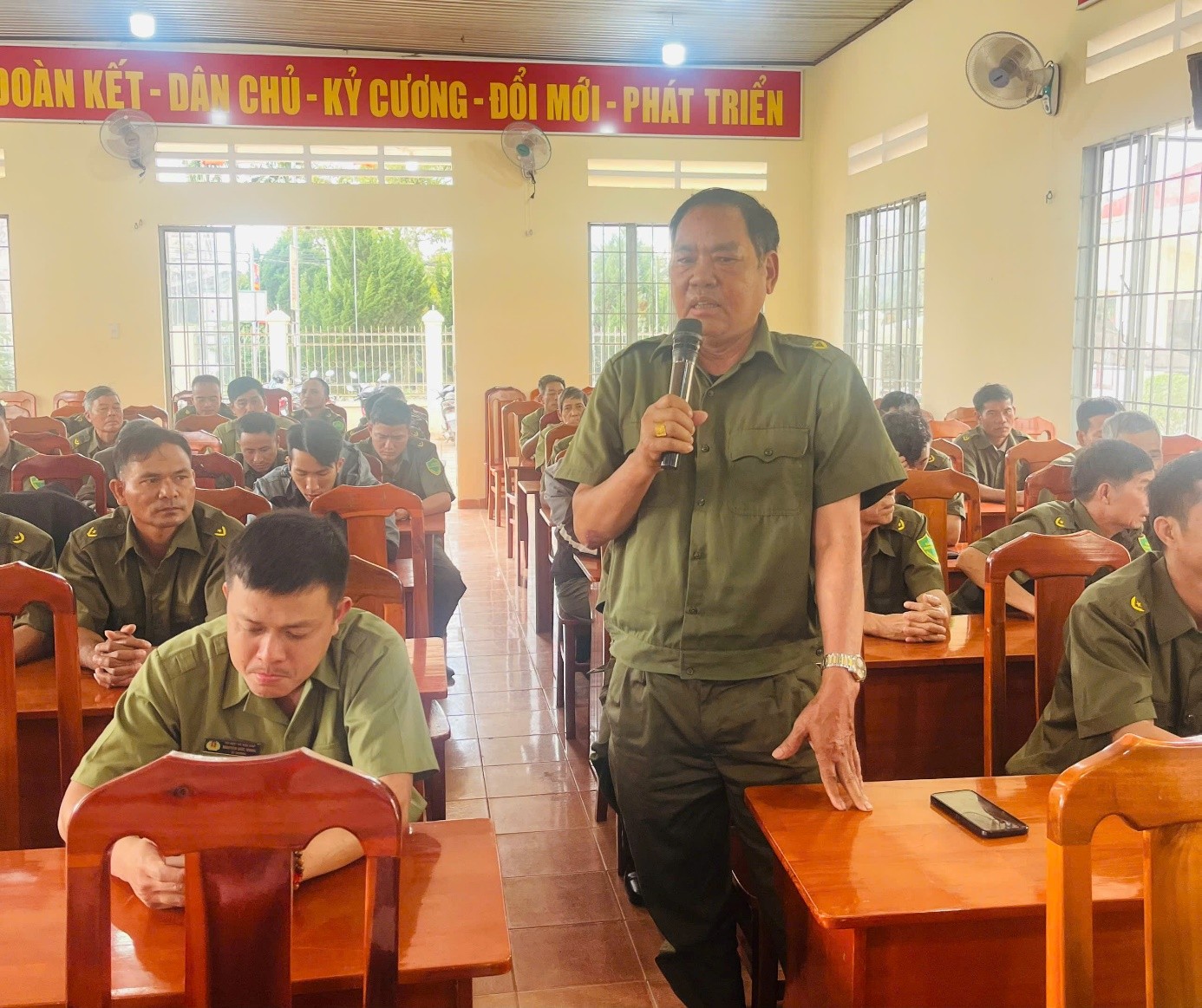 Thành viên lực lượng tham gia bảo vệ an ninh, trật tự ở cơ sở phát biểu, đóng góp ý kiến