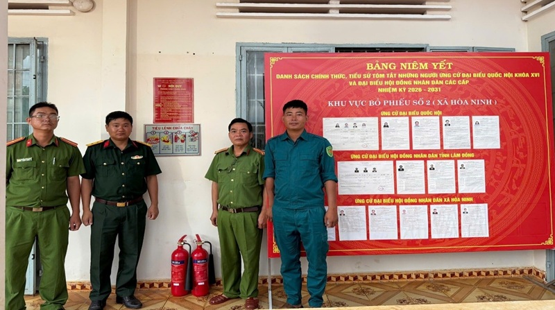 Công an xã Hòa Ninh yêu cầu cán bộ phụ trách khu vực bỏ phiếu tiếp tục duy trì việc kiểm tra, quản lý chặt chẽ nguồn điện, nguồn nhiệt, sắp xếp tài liệu, vật dụng gọn gàng, thông thoáng, bảo đảm lối thoát nạn khi có sự cố xảy ra.