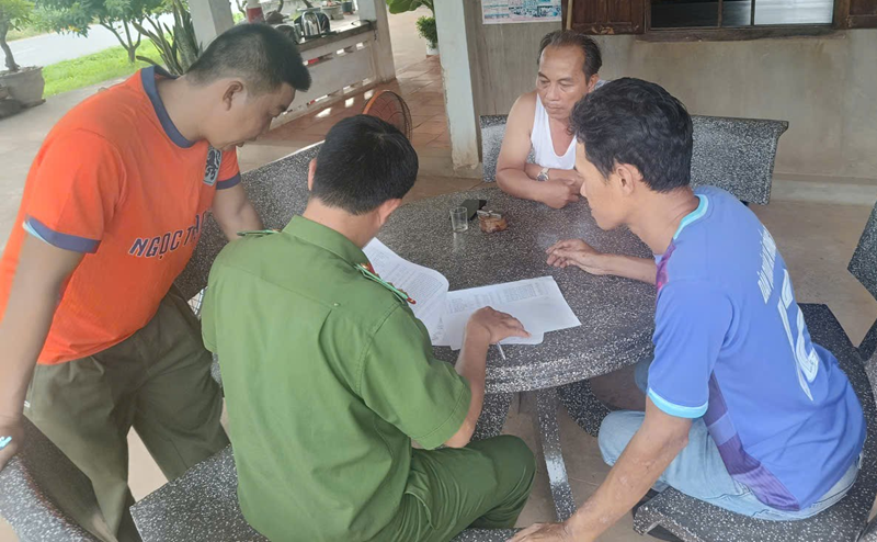 Cán bộ Công an xã đến các cơ sở lưu trú tuyên truyền