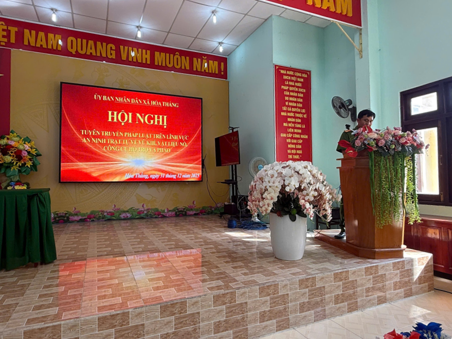 Với phương châm “phòng ngừa là chính”, Công an xã đã tham mưu UBND xã tổ chức hội nghị tuyên truyền pháp luật về an ninh trật tự, trong đó tập trung vào các quy định liên quan đến vũ khí, vật liệu nổ, công cụ hỗ trợ và pháo. Công tác tuyên truyền được thực hiện linh hoạt thông qua các buổi gặp gỡ trực tiếp tại hội nghị, sinh hoạt tổ dân phố, thôn bản; đồng thời lực lượng Công an tăng cường phối hợp với các lực lượng nòng cốt để vận động người dân ký cam kết không vi phạm.