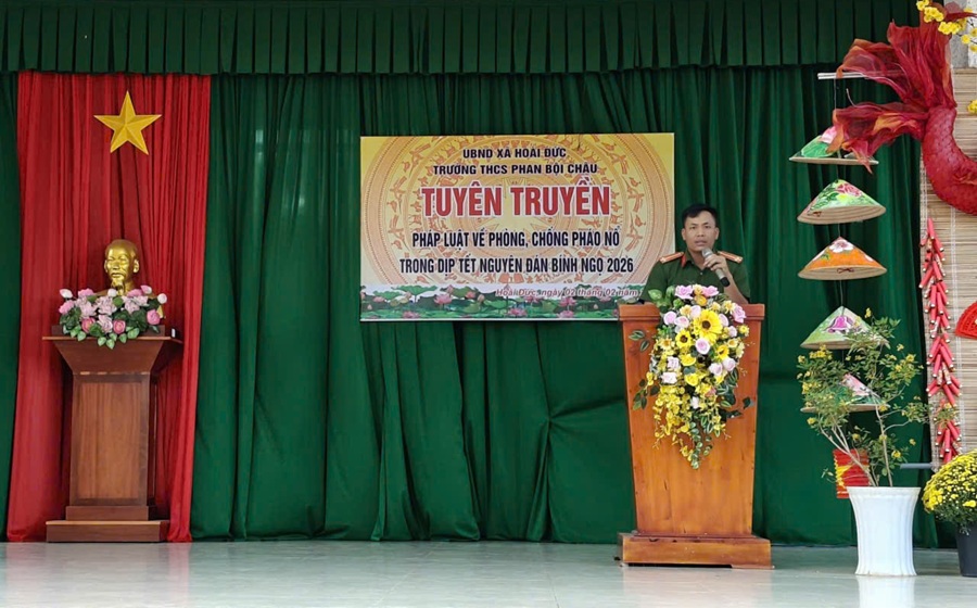 Ngoài ra, Công an xã Hoài Đức kêu gọi mỗi cán bộ, giáo viên và học sinh trở thành tuyên truyền viên tích cực, vận động người thân, cộng đồng không vi phạm pháp luật liên quan đến pháo nổ, góp phần xây dựng môi trường đón Tết an toàn, văn minh.