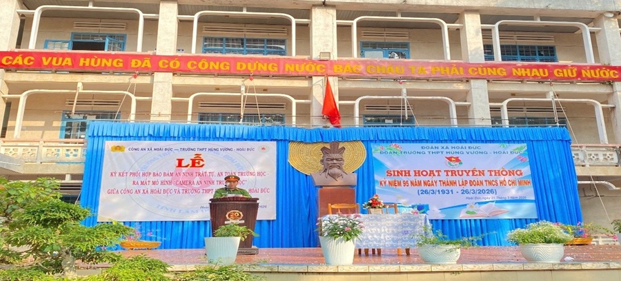 Ngày 21/3/2026, Công an xã Hoài Đức đã phối hợp với Ban Giám hiệu Trường trung học phổ thông Hùng Vương tổ chức chương trình tuyên truyền, tư vấn tuyển sinh vào các trường Công an nhân dân năm 2026.