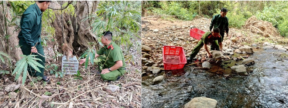 Sau khi tiếp nhận các cá thể, Công an xã đã hoàn thiện hồ sơ và phối hợp với Hạt Kiểm lâm, Ban Quản lý rừng phòng hộ tiến hành thả về môi trường tự nhiên theo đúng quy định.