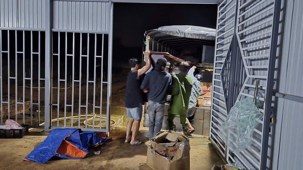 Công an xã Ka Đô di dời tài sản, vận động, hỗ trợ người dân ra khỏi khu vực nước lũ
