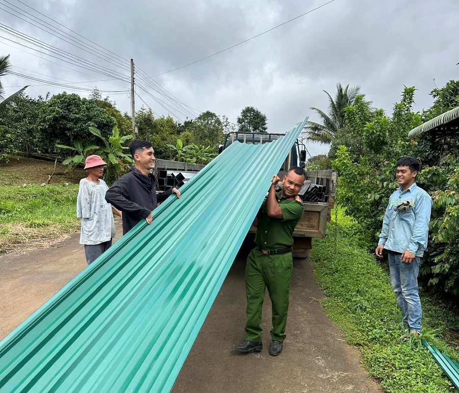 Không chỉ hỗ trợ về mặt vận động, cán bộ chiến sĩ Công an xã còn trực tiếp tham gia các công việc như tháo dỡ nhà cũ, vận chuyển vật liệu, phụ giúp xây dựng nhà mới và hướng dẫn hoàn thiện hồ sơ pháp lý liên quan đến đất đai, nhà ở.