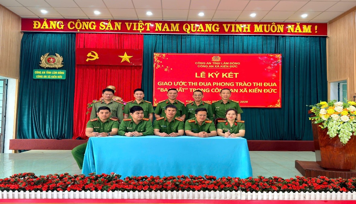 Việc ký kết giao ước thi đua là lời hứa và cam kết trách nhiệm của tập thể Công an xã Kiến Đức trong năm 2026, quyết tâm xây dựng lực lượng trong sạch, vững mạnh, chính quy, kỷ luật, đáp ứng yêu cầu nhiệm vụ trong tình hình mới; giữ vững bình yên địa bàn, phục vụ sự phát triển của địa phương.