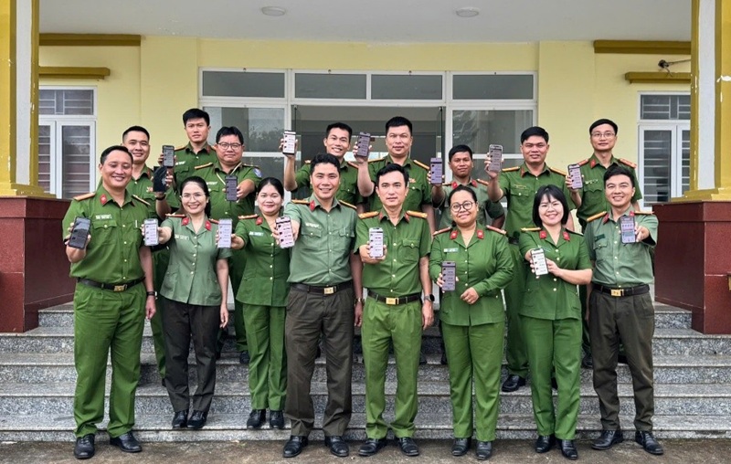 Cán bộ Công an xã tham gia góp ý dự thảo các văn kiện của Đảng trên VNeID
