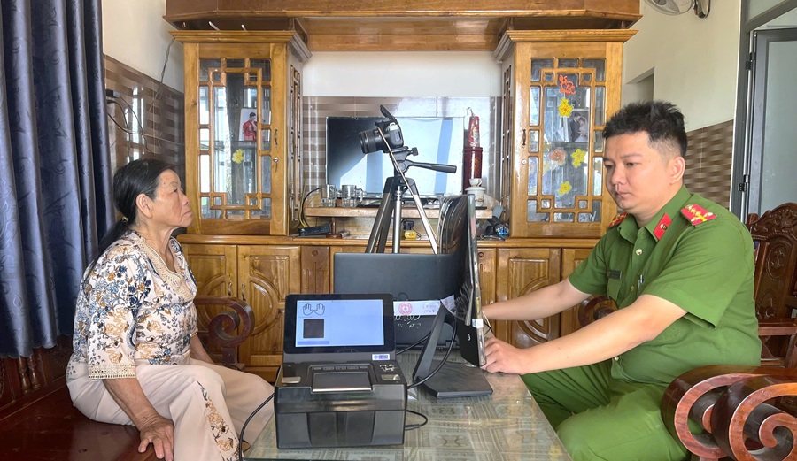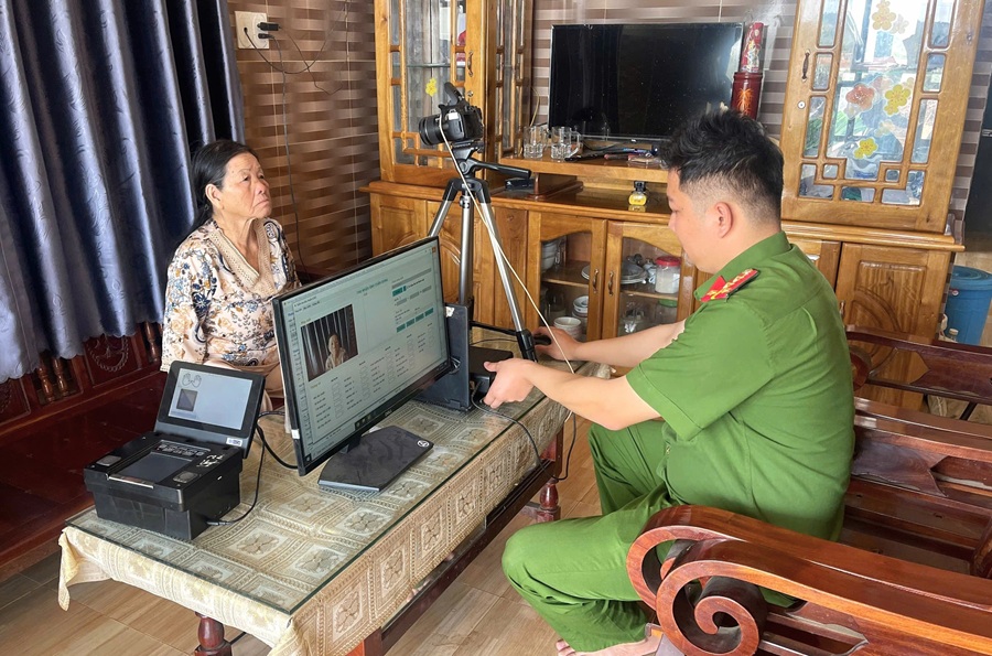Cán bộ Công an xã đến tận nhà dân hỗ trợ cấp định danh điện tử