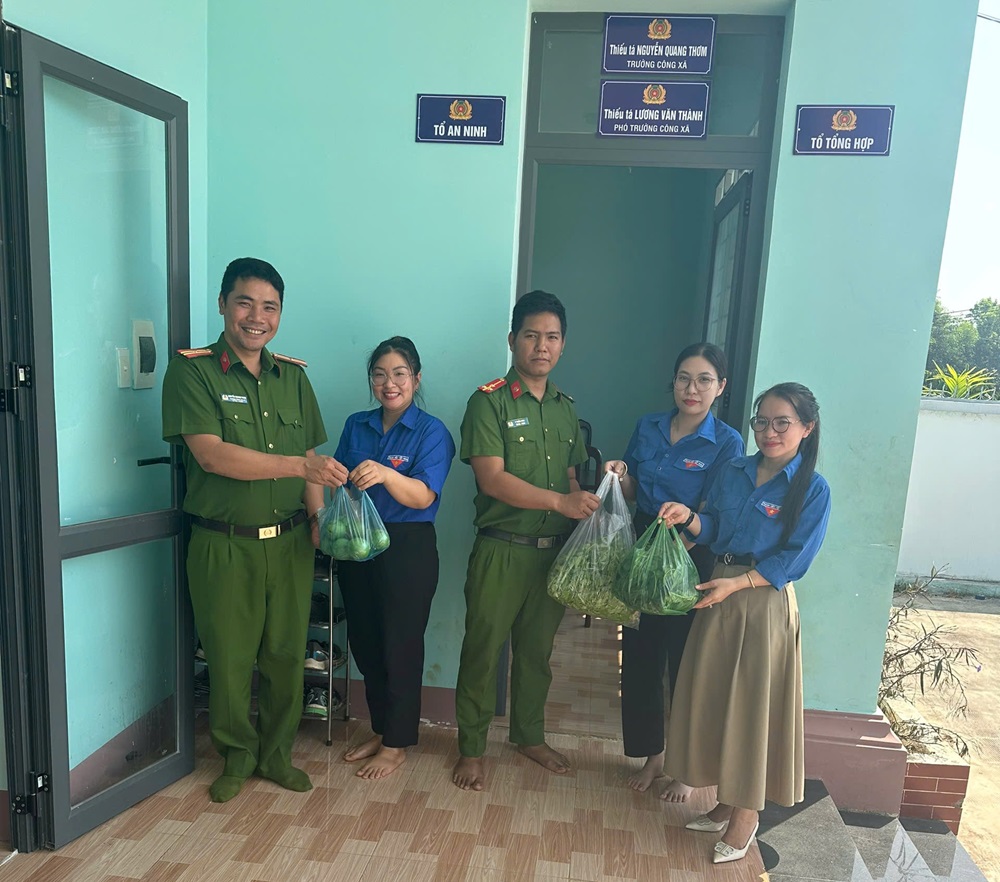 Đoàn viên nhà trường trên địa bàn trao tặng rau sạch bổ sung thêm khẩu phần ăn cho lực lượng Công an xã