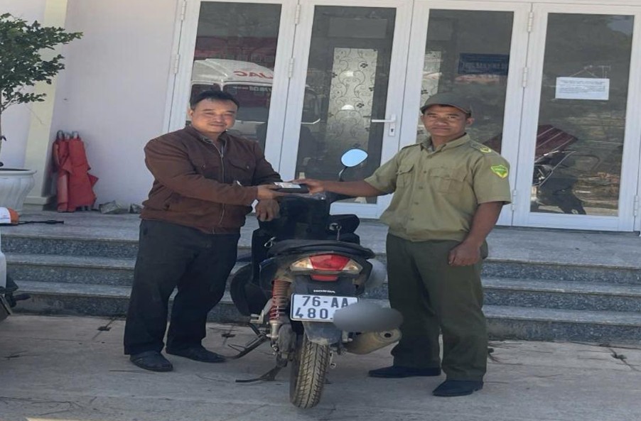 Cụ thể, bgày 18/3/2026, Công an xã tiếp nhận tin báo của người dân về việc phát hiện 01 xe mô tô BKS 76AA-480.XX bị bỏ tại khu vực Đa Đum, thôn 2 khoảng 03 ngày, không rõ chủ sở hữu.