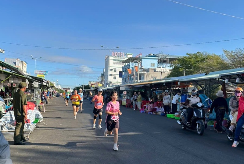 Các vận động viên tham gia chạy chuẩn bị về đích