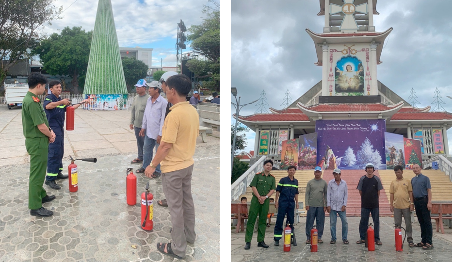 Công an xã tuyên truyền, phổ biến các quy định pháp luật về phòng cháy, chữa cháy; hướng dẫn cách sử dụng bình chữa cháy xách tay; nhấn mạnh việc sử dụng an toàn nguồn lửa, nguồn nhiệt, thiết bị điện; không để vật liệu dễ cháy gần khu vực dễ bén lửa và khu vực trang trí; bảo đảm lối thoát nạn thông thoáng; chuẩn bị đầy đủ phương tiện chữa cháy ban đầu và phân công lực lượng tại chỗ thường trực trong suốt thời gian diễn ra Lễ Giáng sinh. Đặc biệt, vào tối ngày 24/12/2025, khi số lượng bà con giáo dân đến tham dự đông, cần tăng cường kiểm tra, nhắc nhở để kịp thời phòng ngừa, xử lý các tình huống phát sinh.