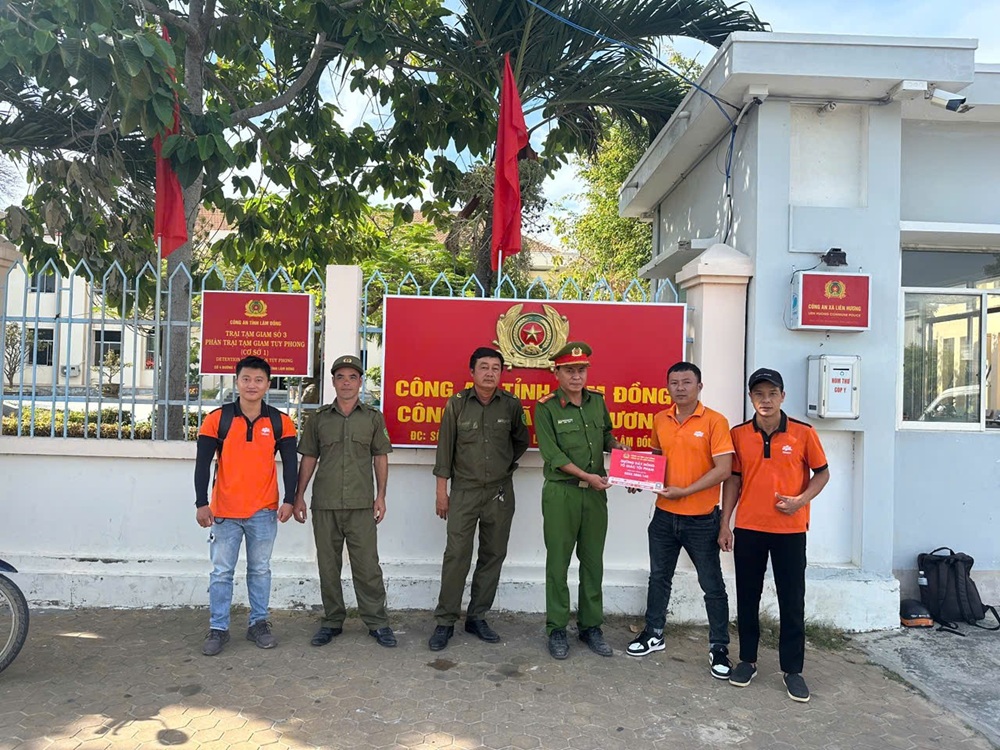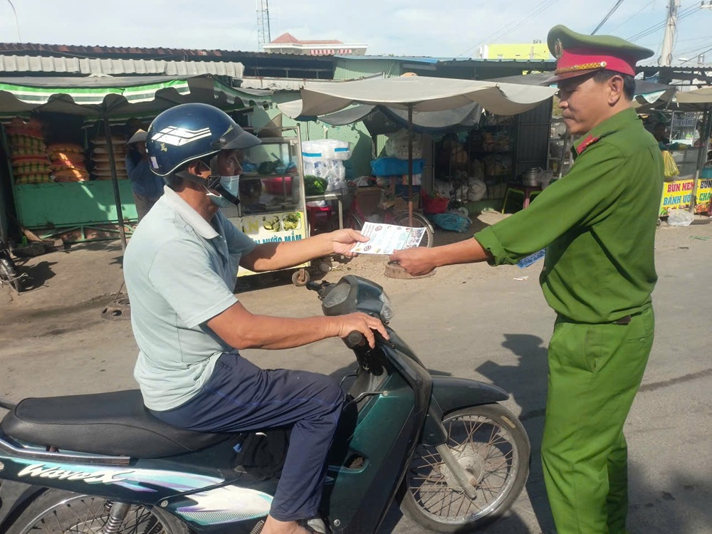 Nhà mạng FPT tặng Công an xã tờ rơi số điện thoại đường dây nóng tố giác tội phạm