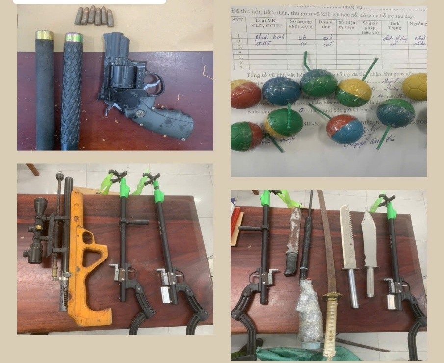 Qua công tác vận động, đa số quần chúng nhân dân đã nhận thức rõ trách nhiệm và tự giác giao nộp các loại vũ khí: 11 vũ khí tự chế (đao, kiếm, mã tấu…), 01 công cụ hỗ trợ và 04 viên pháo banh, thu hồi 01 súng tự chế có tính năng tương tự như súng quân dụng và 06 viên đạn quân dụng.