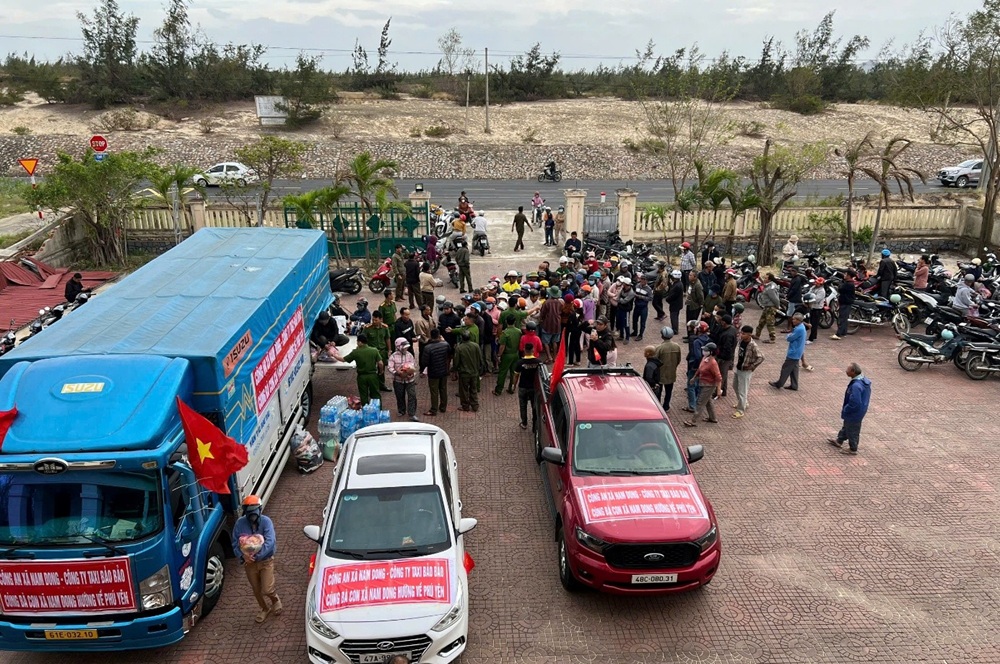 Đoàn Công an xã Nam Dong vận chuyển và trao tặng nhu yếu phẩm đến bà con thôn Thọ Lộc, xã Xuân Cảnh, tỉnh Đắk Lắk