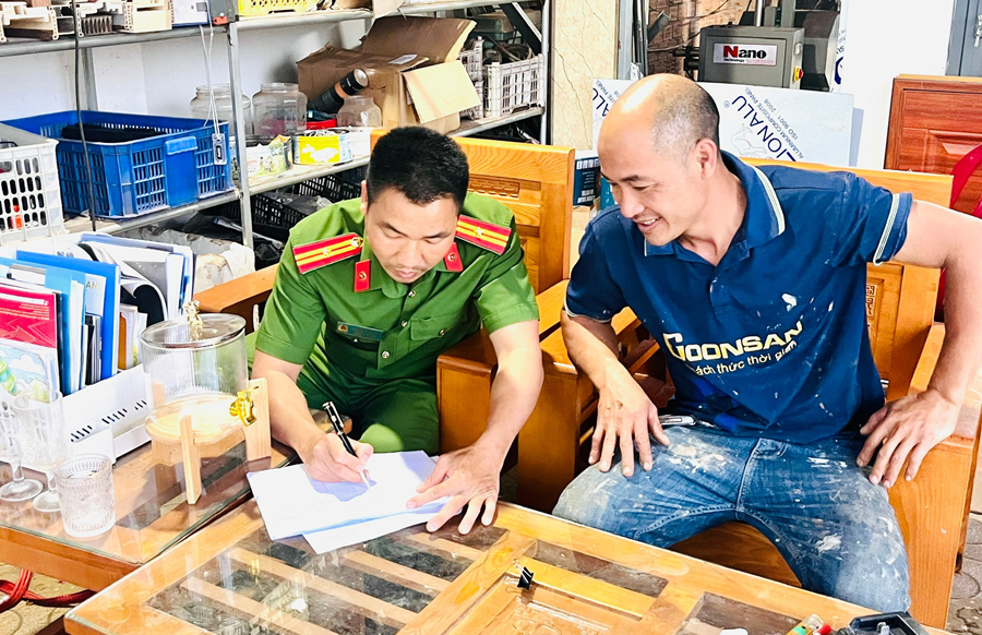 Cán bộ Công an xã kiểm tra, hướng dẫn các quy định pháp luật về cư trú đến từng hộ gia đình trên địa bàn xã