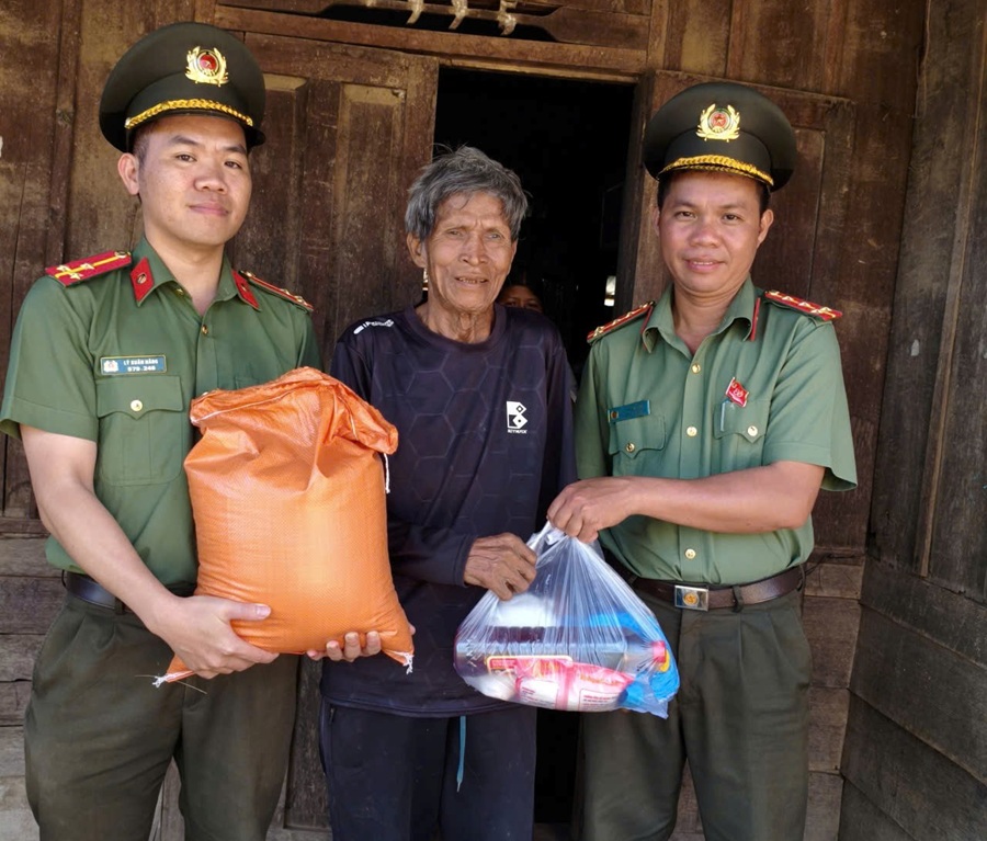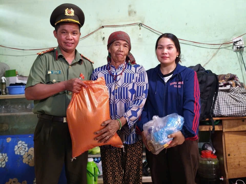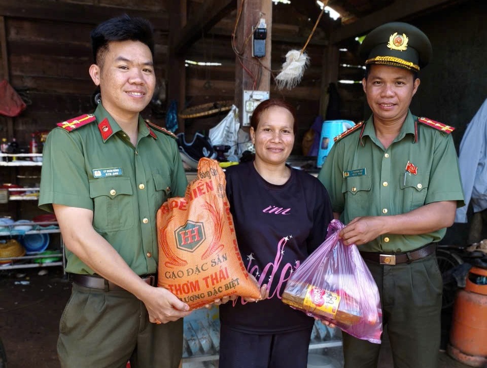 Với tinh thần trách nhiệm và sẻ chia, ngày 08/4/2026, lực lượng Công an xã đã trực tiếp đến thăm hỏi, gặp gỡ các hộ gia đình đồng bào dân tộc tại chỗ có hoàn cảnh khó khăn và các gia đình chính sách trên địa bàn. Qua đó, đã trao tặng 40 phần quà, mỗi phần trị giá 350.000 đồng, gồm các nhu yếu phẩm thiết yếu như gạo, mì tôm, mắm, muối…, góp phần hỗ trợ, động viên bà con vượt qua khó khăn, ổn định cuộc sống.