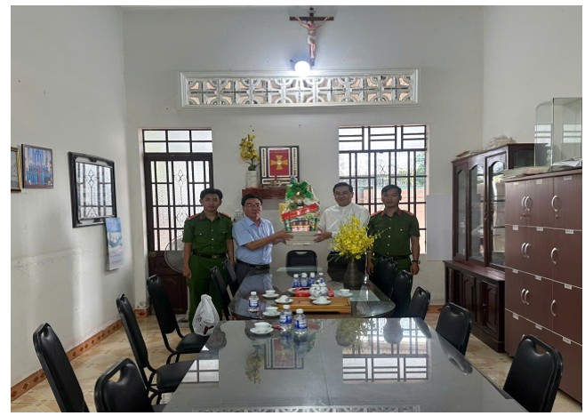 Công an xã đến thăm, tặng quà, chúc mừng Lễ Phục sinh tại giáo xứ Đa Kai