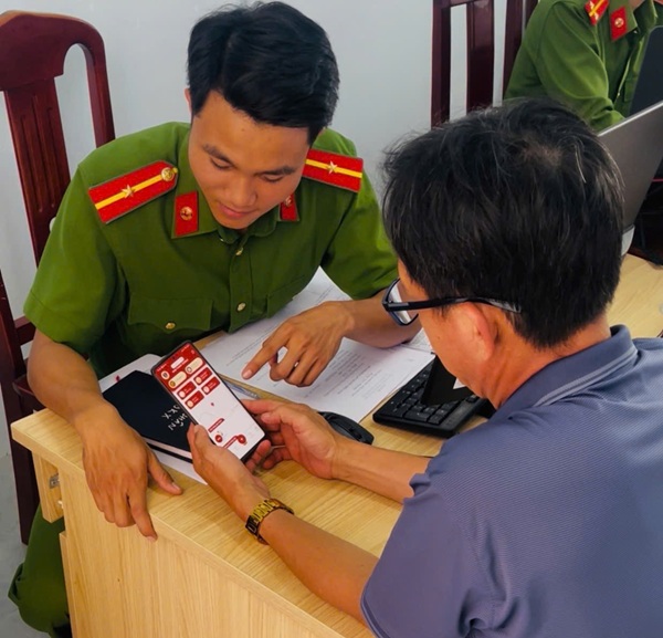 Công an xã Nghị Đức trực tiếp hướng dẫn người dân cài đặt và sử dụng ứng dụng VNeTraffic