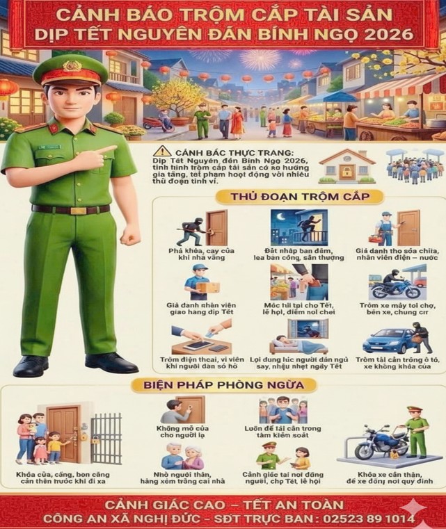 Trước tình hình đó, để chủ động phòng ngừa và đấu tranh hiệu quả với loại tội phạm này, Công an xã Nghị Đức đã triển khai đồng bộ nhiều biện pháp công tác nghiệp vụ; đồng thời đẩy mạnh tuyên truyền, phổ biến quy định của pháp luật, thông báo rộng rãi phương thức, thủ đoạn hoạt động của tội phạm cũng như các biện pháp phòng ngừa.