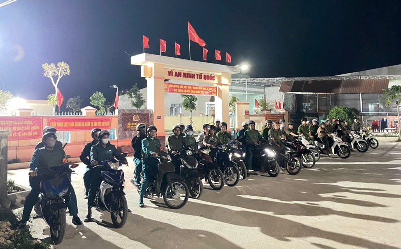 Công an xã Nghị Đức tập trung lực lượng tăng cường tuần tra ban đêm