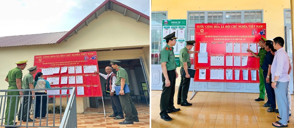Công an xã Nhân Cơ kiểm tra công tác bảo đảm an ninh, trật tự tại các khu vực bỏ phiếu