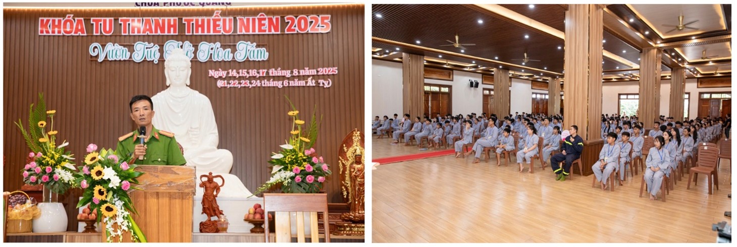 Công an xã Nhân Cơ tuyên truyền pháp luật, phòng chống tội phạm, tai nạn đuối nước cho các khóa sinh tham gia khóa tu mùa hè trên địa bàn xã