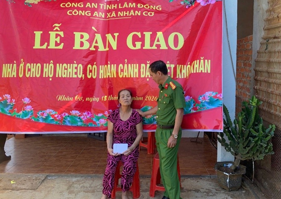 Tại Lễ bàn giao, chỉ huy Công an xã Nhân Cơ tiếp tục trao tặng phần quà Tết của đơn vị, giúp bà Hường đón Xuân Bính Ngọ 2026 trong không khí ấm áp, nghĩa tình.