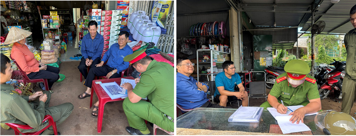 Công an xã đã phối hợp Ban tự quản các thôn tổ chức kiểm tra các cơ sở kinh doanh có điều kiện về an ninh, trật tự như quán ăn, tạp hóa, nhà trọ, kho hàng, cơ sở sửa chữa xe máy… Nội dung kiểm tra tập trung vào giấy phép hoạt động kinh doanh, hồ sơ quản lý ngành nghề, sổ lưu trú, điều kiện bảo đảm an ninh, trật tự theo Nghị định số 96 của Chính phủ và các quy định về phòng cháy, chữa cháy. Qua kiểm tra, lực lượng Công an xã đã yêu cầu các cơ sở khắc phục một số tồn tại, hạn chế như bổ sung phương tiện phòng cháy, chữa cháy, niêm yết nội quy, tiêu lệnh phòng cháy, chữa cháy, hoàn thiện sổ lưu trú theo quy định.
