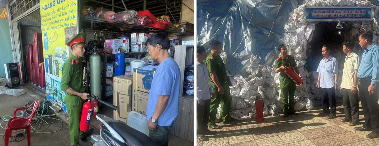 Bên cạnh đó, trước thời điểm Lễ Noel năm 2025, Công an xã Nhân Cơ đã kết hợp kiểm tra công tác phòng cháy, chữa cháy tại các cơ sở kinh doanh và một số điểm sinh hoạt tôn giáo trên địa bàn; đồng thời trực tiếp hướng dẫn kỹ năng sử dụng bình chữa cháy, cách xử lý tình huống khi xảy ra cháy, nổ, góp phần bảo đảm an toàn tuyệt đối cho các hoạt động tôn giáo và sinh hoạt của Nhân dân.