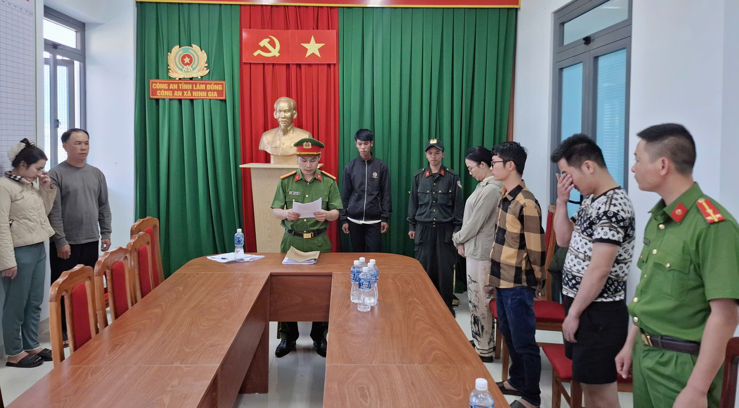Tại cơ quan Công an, các đối tượng khai nhận số tang vật trên là ma túy. Mở rộng điều tra, Công an xã đã phối hợp với công an các địa phương lân cận, triệu tập các đối tượng: Văn Ngọc My (SN 1998) thường trú xã Nam Ban Lâm Hà, Hoàng Minh (SN 2000) thường trú tại xã Hiệp Thạnh, Lò Khánh Trường (SN 2003) thường trú tại xã Đức Trọng, Hoàng Nhật Anh (SN 1989) và Nguyễn Thị Huy (SN 1992) cùng thường trú tại xã Tân Hội lên làm việc. Qua đấu tranh, các đối tượng khai nhận, vào tối hôm trước, các đối tượng Oanh, Hiền, Tuấn Anh, Huy và Nhật Anh tổ chức ăn nhậu và đồng ý góp tiền để mua ma túy sử dụng. Sau đó, nhóm này đã liên hệ với Văn Ngọc My để mua ma túy. Sau đó, My liên hệ với Hoàng Minh để mua rồi mang ma túy đến phòng trọ để giao cho nhóm của Oanh sử dụng.