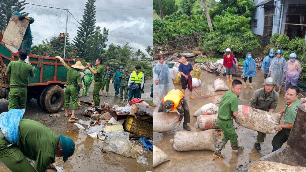 Sau khi nước rút, Công an xã tiếp tục phối hợp các lực lượng tại địa phương triển khai công tác khắc phục hậu quả. Cán bộ, chiến sĩ được huy động giúp người dân dọn bùn đất, vệ sinh nhà cửa, thu gom vật dụng bị cuốn trôi, sắp xếp lại tài sản; đồng thời khơi thông dòng chảy, dọn cây trôi, rác thải, bùn đất trên các tuyến đường để bảo đảm giao thông an toàn.