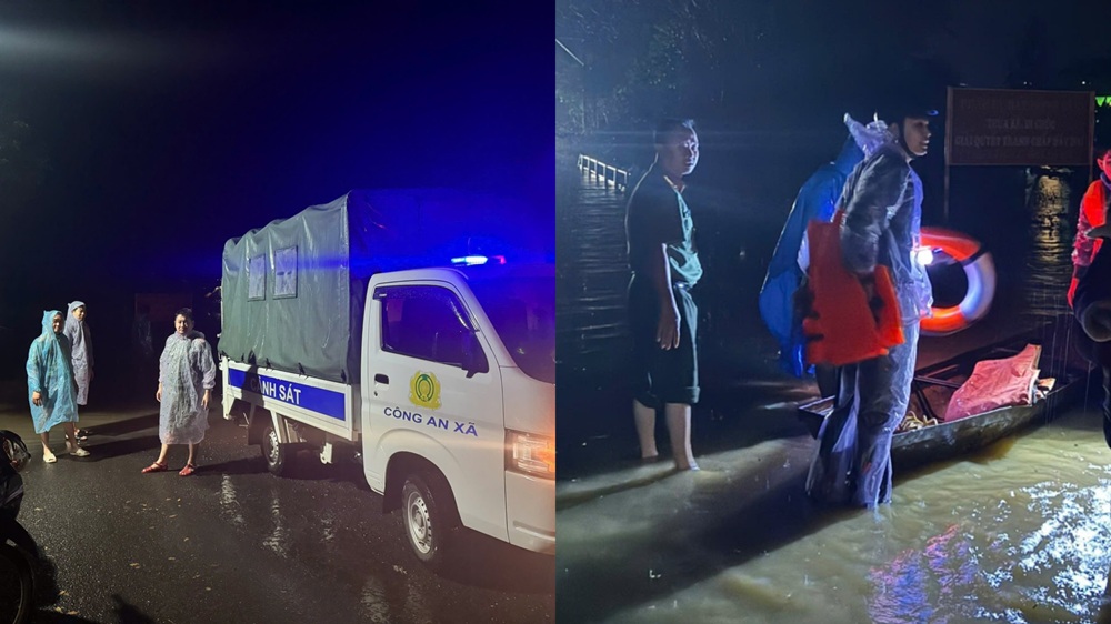 Công an xã Ninh Gia triển khai lực lượng xuống địa bàn trong đêm, tổ chức cảnh báo và sẵn sàng cứu hộ khi nước lũ dâng cao