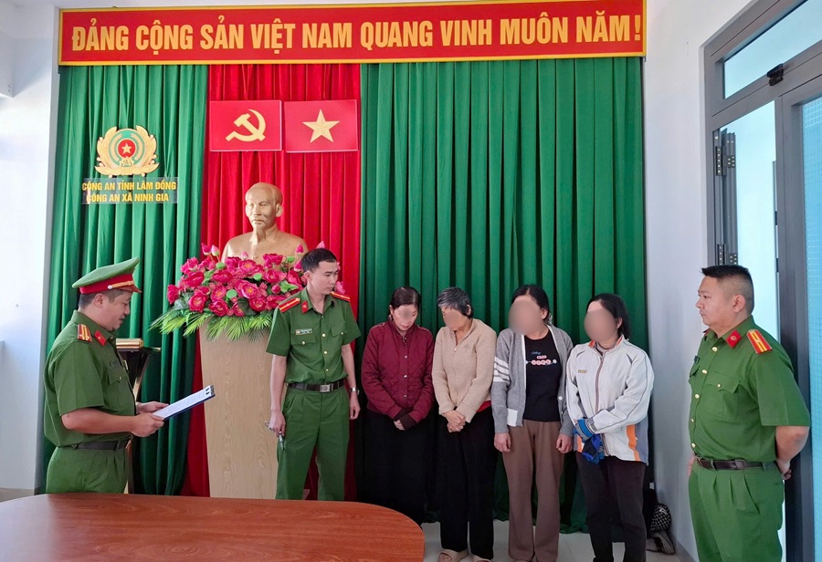 Ngay sau khi đưa các đối tượng về trụ sở làm việc, Công an xã Ninh Gia đã phối hợp Phòng Cảnh sát Hình sự - Công an tỉnh Lâm Đồng tập trung đấu tranh, khai thác, làm rõ hành vi vi phạm. Trên cơ sở kết quả điều tra, ngày 15/01/2026, Cơ quan Cảnh sát điều tra Công an tỉnh Lâm Đồng đã ra lệnh bắt người bị giữ trong trường hợp khẩn cấp và quyết định tạm giữ đối với 04 đối tượng về hành vi đánh bạc, gồm: Ng.T.T.N (SN 1969), Đ.T.T.T (SN 1978), T.T.K.C (SN 1976) và C.T.A (SN 1966) - cùng thường trú tại xã Ninh Gia, tỉnh Lâm Đồng.