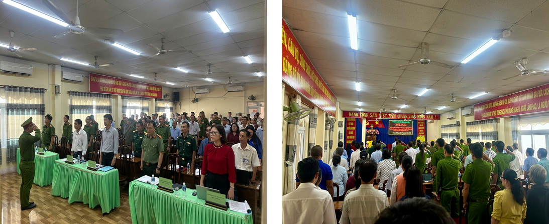 Đồng chí Võ Minh Chiến, Chủ tịch UBND xã Phan Rí Cửa phát biểu khai mạc Hội nghị (Ảnh 1) và đồng chí Trung tá Võ Anh Tuấn, Trưởng Công an xã điều hành Hội nghị (Ảnh 2).
