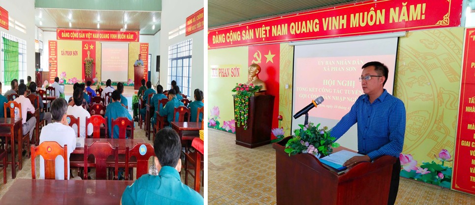 Tham dự hội nghị, Công an xã Phan Sơn đã phát huy tốt vai trò nòng cốt trong công tác tham mưu, phối hợp triển khai hiệu quả nhiệm vụ tuyển chọn và gọi công dân nhập ngũ. Ngay từ đầu, đơn vị đã chủ động nắm tình hình địa bàn, rà soát, quản lý chặt chẽ nguồn công dân trong độ tuổi sẵn sàng nhập ngũ; đồng thời phối hợp với các ban, ngành, đoàn thể đẩy mạnh công tác tuyên truyền, vận động, nâng cao nhận thức của Nhân dân về nghĩa vụ thiêng liêng bảo vệ Tổ quốc.