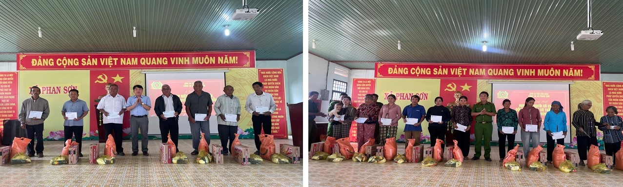 Nhân dịp này, Công an xã Phan Sơn đã trao tặng 30 suất quà, với tổng trị giá hơn 15 triệu đồng cho người có uy tín, đội chuyên săn và thân nhân. Những phần quà tuy giá trị không lớn nhưng thể hiện sự quan tâm, sẻ chia, động viên kịp thời của cấp ủy, chính quyền và lực lượng Công an đối với các cá nhân, lực lượng quần chúng.