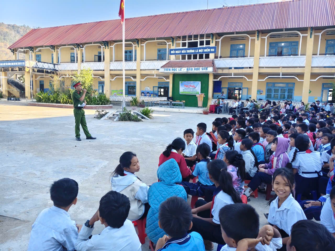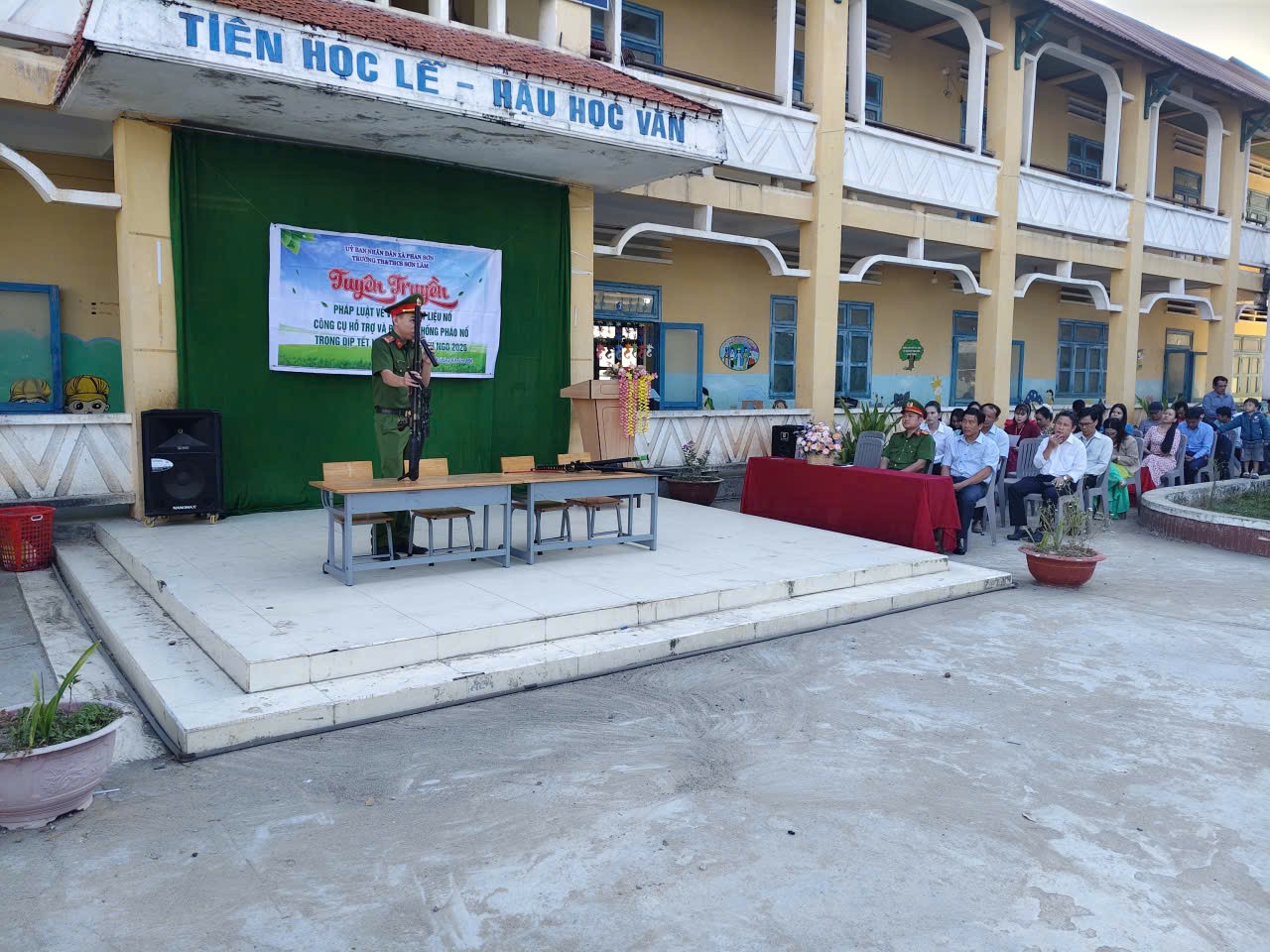 Tại buổi tuyên truyền, Công an xã đã phổ biến các quy định của pháp luật liên quan đến quản lý, sử dụng vũ khí, vật liệu nổ, công cụ hỗ trợ; nhấn mạnh ý nghĩa, tầm quan trọng của việc chấp hành pháp luật, đặc biệt trong dịp trước, trong và sau Tết Nguyên đán. Đồng thời, khuyến cáo cán bộ, giáo viên và học sinh không mua bán, tàng trữ, vận chuyển, sử dụng, đốt pháo nổ; không tàng trữ, sử dụng vũ khí, vật liệu nổ, công cụ hỗ trợ trái phép; không tự chế các vật dụng nguy hiểm, tiềm ẩn nguy cơ mất an toàn.