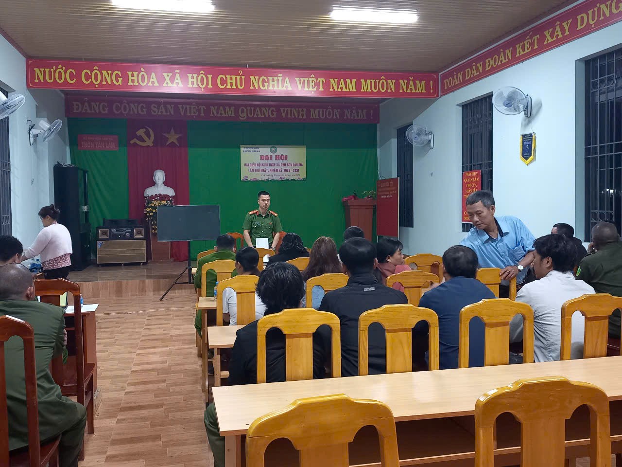 Tham dự hội nghị có đại diện ban nhân dân thôn, lực lượng an ninh cơ sở cùng đông đảo quần chúng nhân dân trên địa bàn. Tại hội nghị, đồng chí Đại úy Phan Hồng Đức – Phó Trưởng Công an xã đã thông tin tình hình an ninh, trật tự trong thời gian qua; phương thức, thủ đoạn hoạt động của các loại tội phạm, đặc biệt là tội phạm trộm cắp, lừa đảo qua mạng, tệ nạn xã hội… Đồng thời, tuyên truyền, vận động người dân nâng cao tinh thần cảnh giác, tích cực tham gia phát hiện, tố giác tội phạm.
