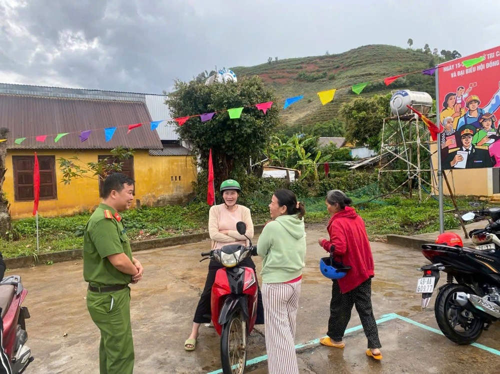 Hình 2: Công an xã tiếp xúc, thăm hỏi, tuyên truyền, nắm tâm tư nguyện vọng cử tri sau các buổi họp, tiếp xúc