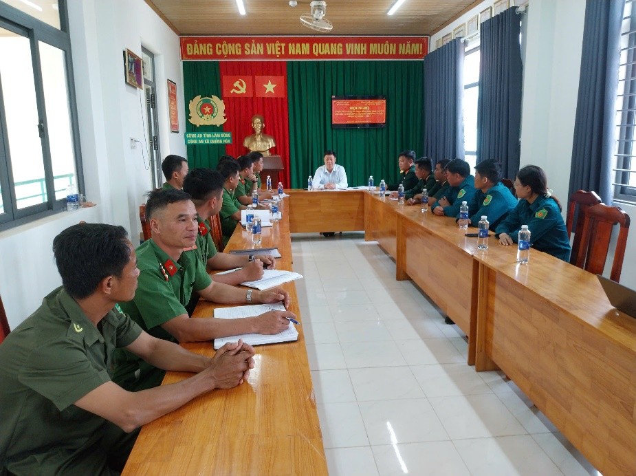 Quang cảnh hội nghị hiệp đồng bảo đảm an ninh trật tự phục vụ bầu cử tại xã Quảng Hòa