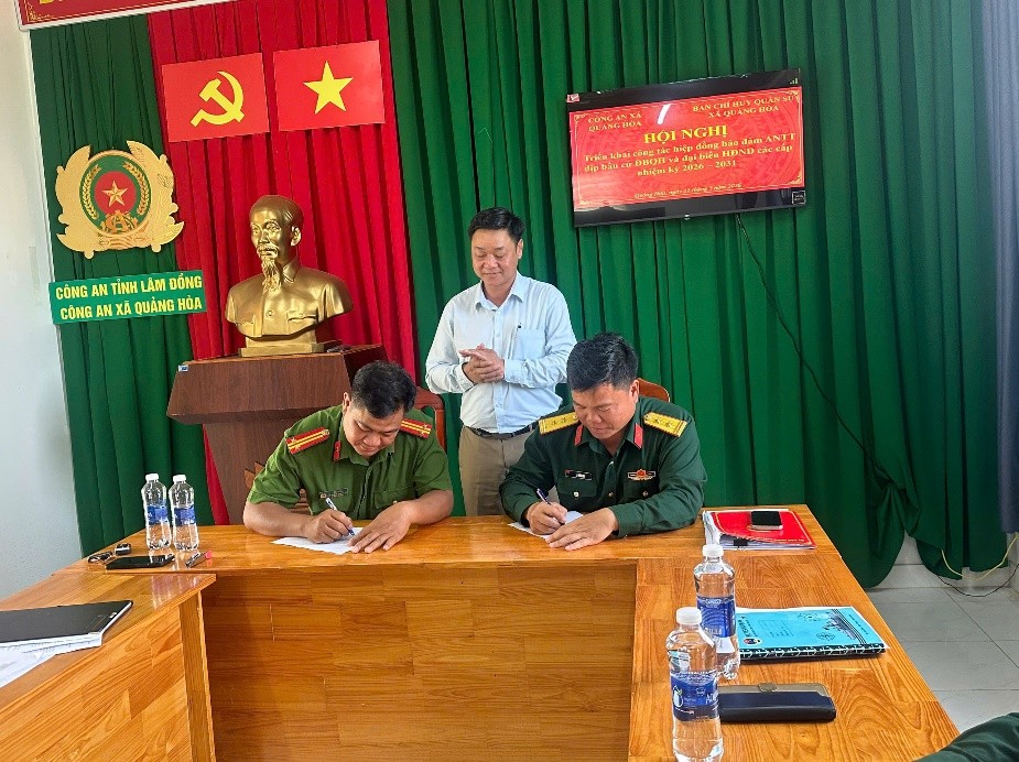 Theo nội dung hiệp đồng, Công an xã Quảng Hòa sẽ chủ trì công tác nắm tình hình địa bàn, tăng cường các biện pháp phòng ngừa, đấu tranh với các loại tội phạm và hành vi vi phạm pháp luật, bảo đảm an ninh chính trị, trật tự an toàn xã hội. Ban Chỉ huy Quân sự xã Quảng Hòa phối hợp bố trí lực lượng dân quân tham gia bảo vệ các khu vực bỏ phiếu, tổ chức tuần tra, canh gác tại các địa điểm trọng điểm và sẵn sàng lực lượng hỗ trợ khi xảy ra các tình huống phức tạp.