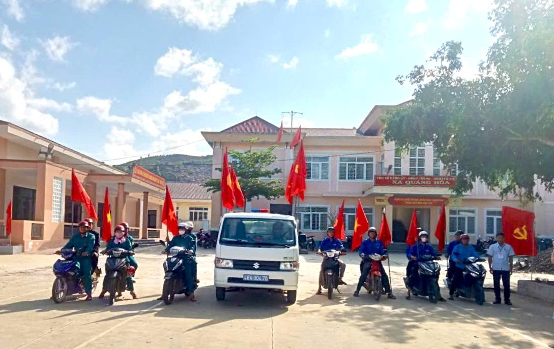 Tiếp đó, hưởng ứng Tháng Thanh niên năm 2026, chiều 12/3/2026, Đoàn Thanh niên Công an xã phối hợp với Đoàn xã Quảng Hòa, Ban Chỉ huy Quân sự xã và Chi đoàn các thôn trên địa bàn tổ chức ra quân tuyên truyền lưu động về cuộc bầu cử đại biểu Quốc hội khóa XVI và đại biểu Hội đồng nhân dân các cấp nhiệm kỳ 2026 – 2031.